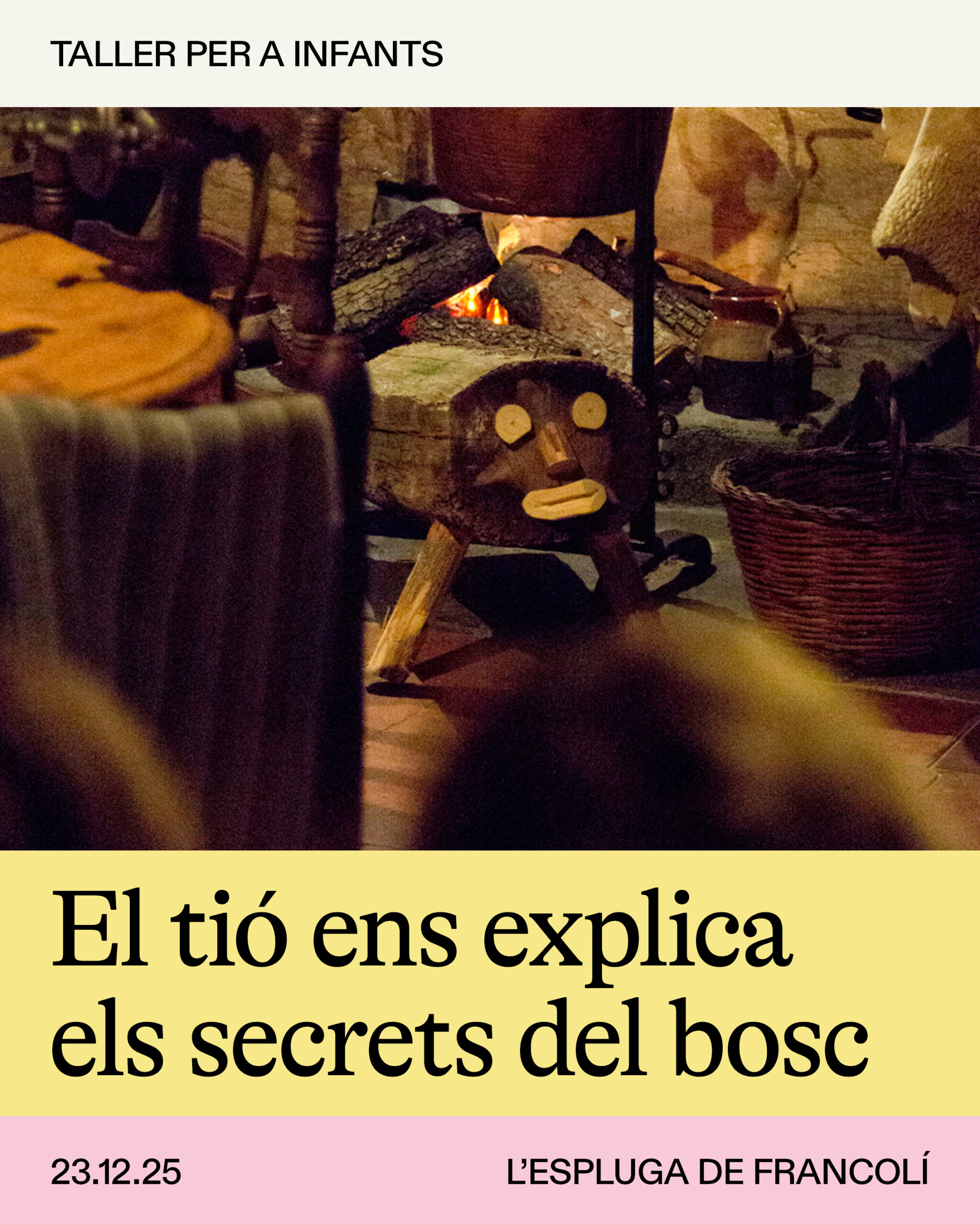I quan el trobem… Es farà fosc i amb un espectacle preciós de llum negra, el tió ens revelarà en veu baixa el secret més ben guardat que hi ha al cor del bosc. Una història plena de màgia, llum i sorpreses, pensada especialment per als més petits. No us ho perdeu, que el tió només explica aquest secret un cop l’any!