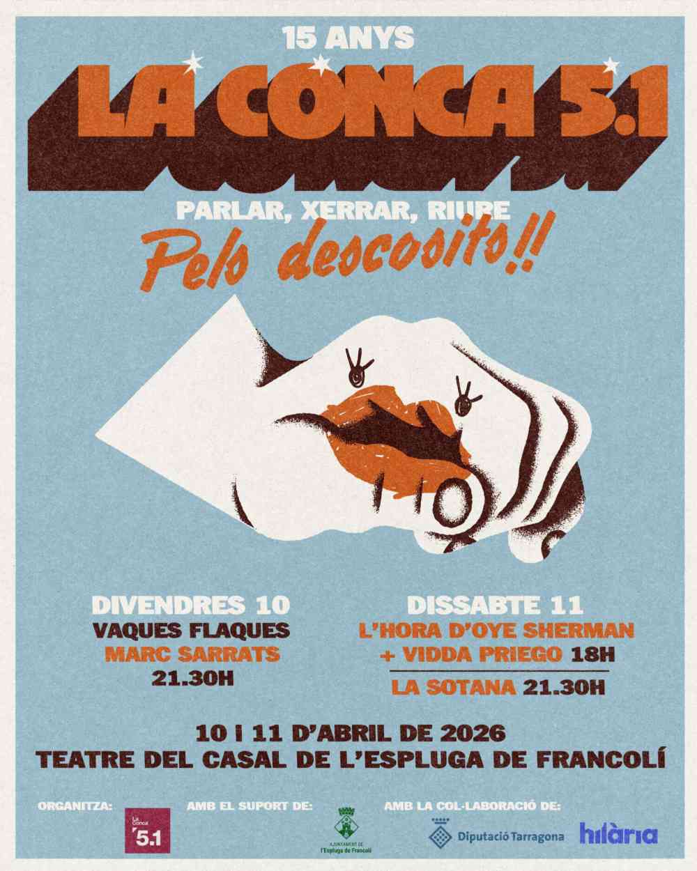 El Teatre del Casal de L’Espluga de Francolí acollirà la primera edició del festival Pels Descosits!!. Organitzat per l’Associació La Conca 5.1 per celebrar els seus primers quinze anys d’existència. Una iniciativa que neix amb la voluntat d’acostar els grans formats de comèdia i humor en català a la Conca de Barberà. Una proposta que compta […]