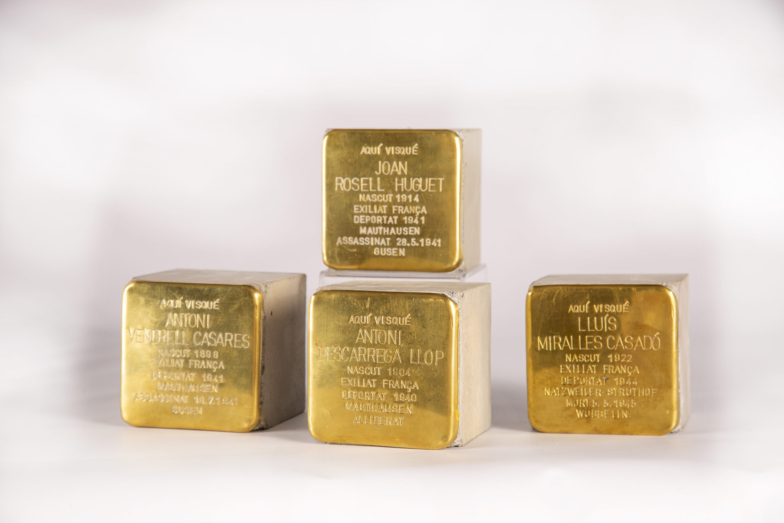 Fotografies d’estudi de les 4 Stolpersteine, instal·lades el passat 22 de novembre del 2025 a l’Espluga de Francolí.