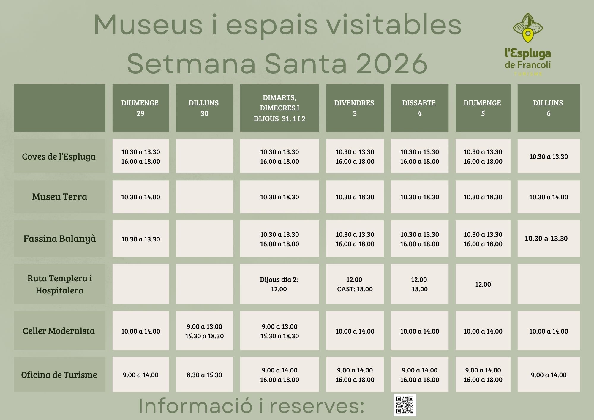 HORARIS I ACTIVITATS: Setmana Santa 2026