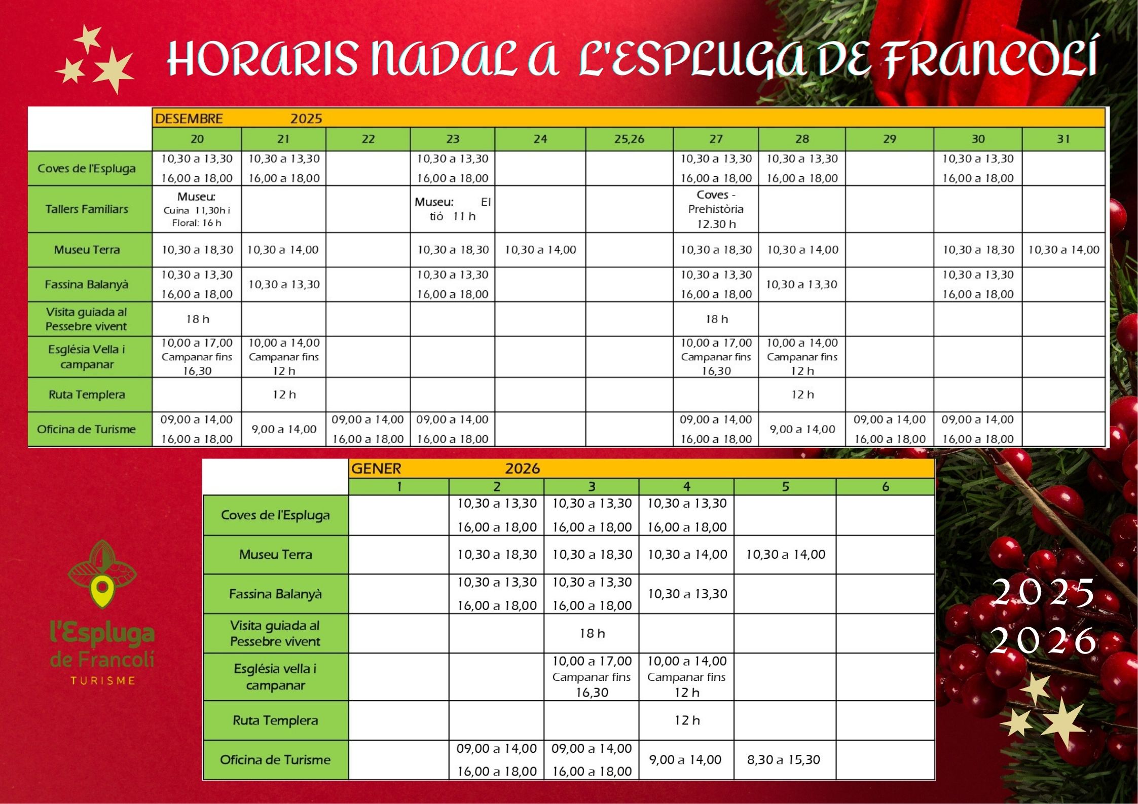 Consulta els horaris especials dels espais visitables i les activitats familiars que s’organitzen als Museus de l’Espluga de Francolí durant aquestes festes de Nadal.
