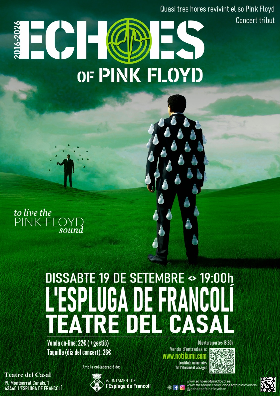 Concert tribut a PINK FLOYD al Teatre del Casal, a les 7 de la tarda. Quasi tres hores revivin el seu so.