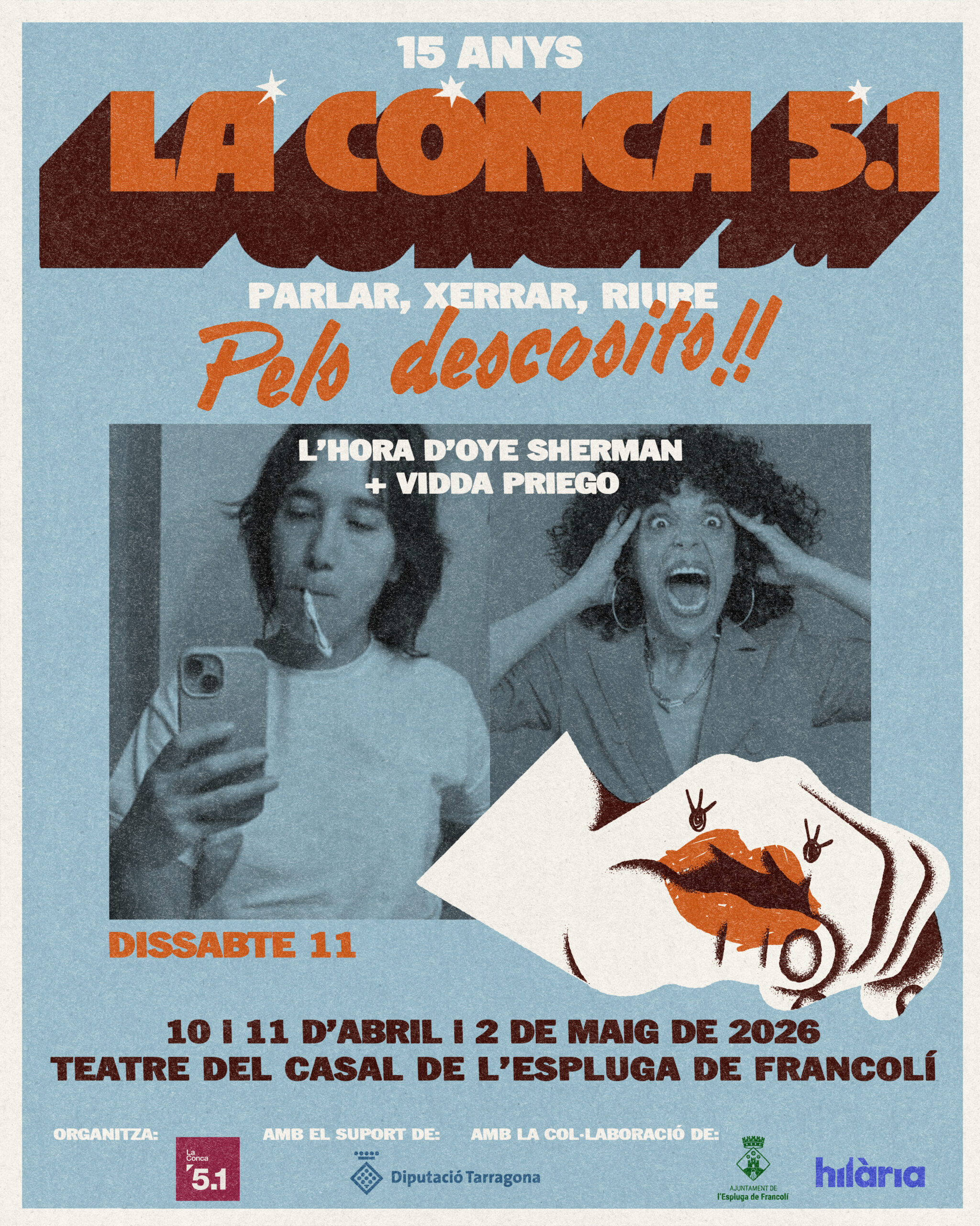 Dissabte 11 d’abril POTCAST D’HUMOR al teatre del Casal, per celebrar els 15 anys de La Conca 5.1 .
