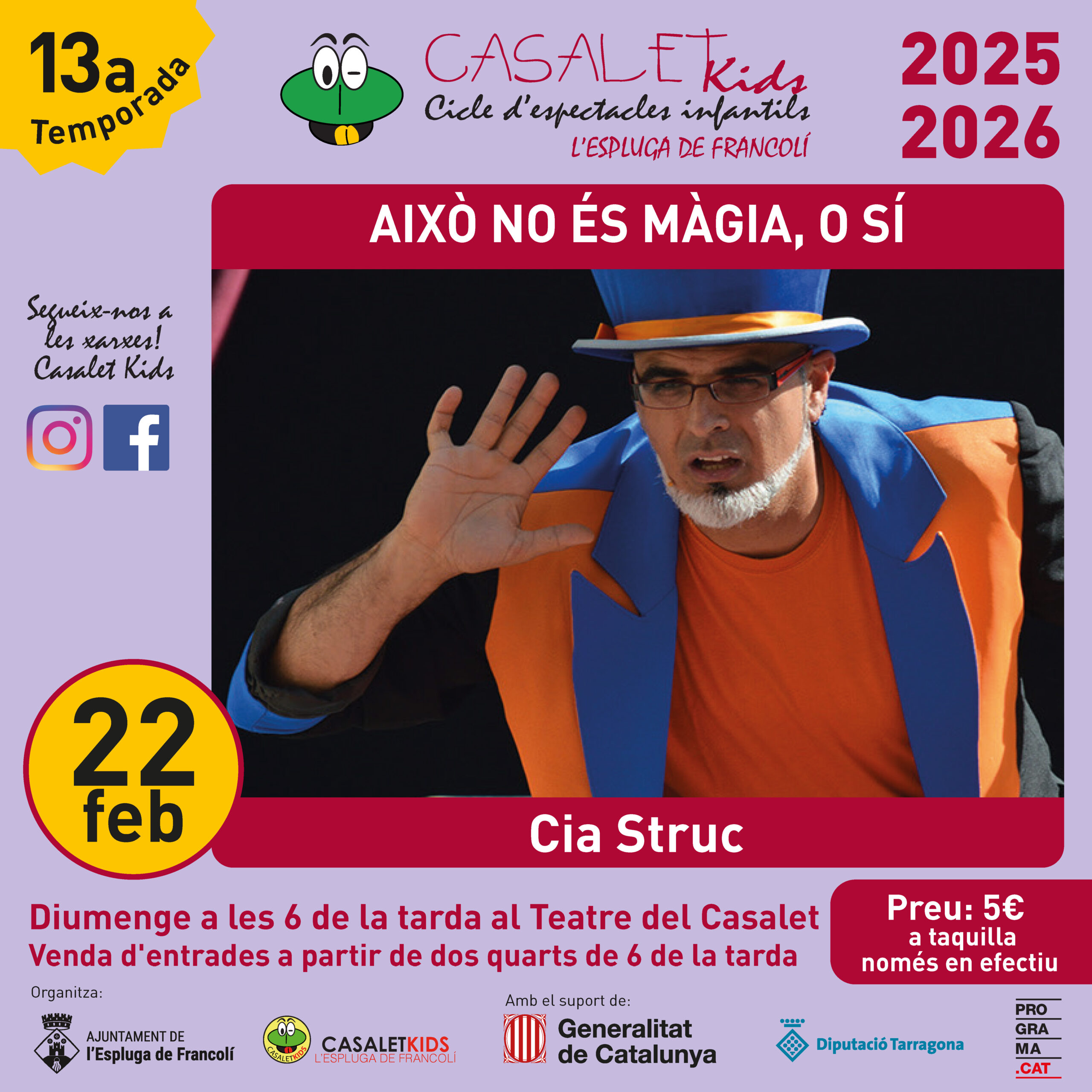 “Això no és màgia, o sí” de la Companyia Struc, a la Sala Folch i Torres del Casalet.